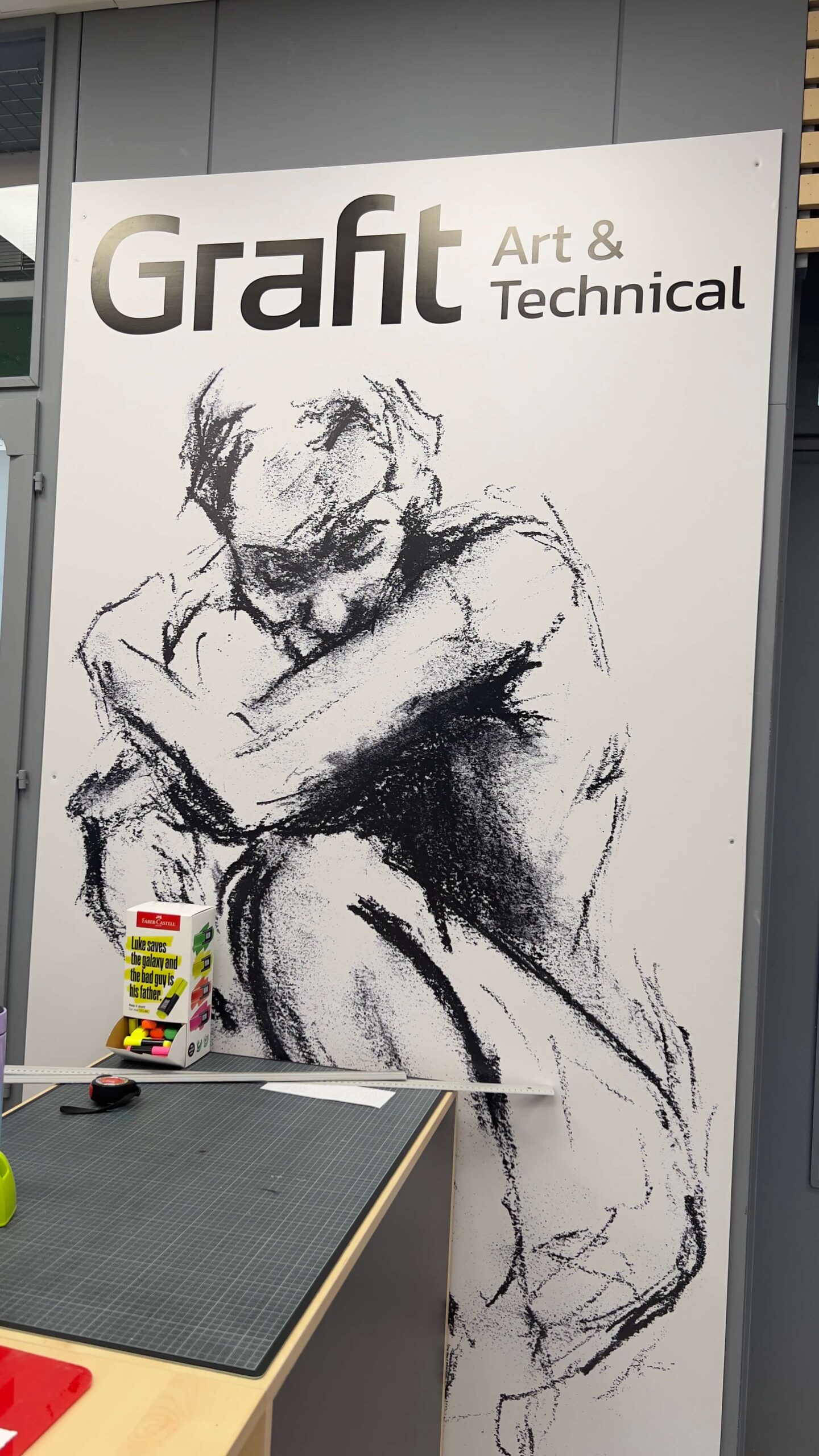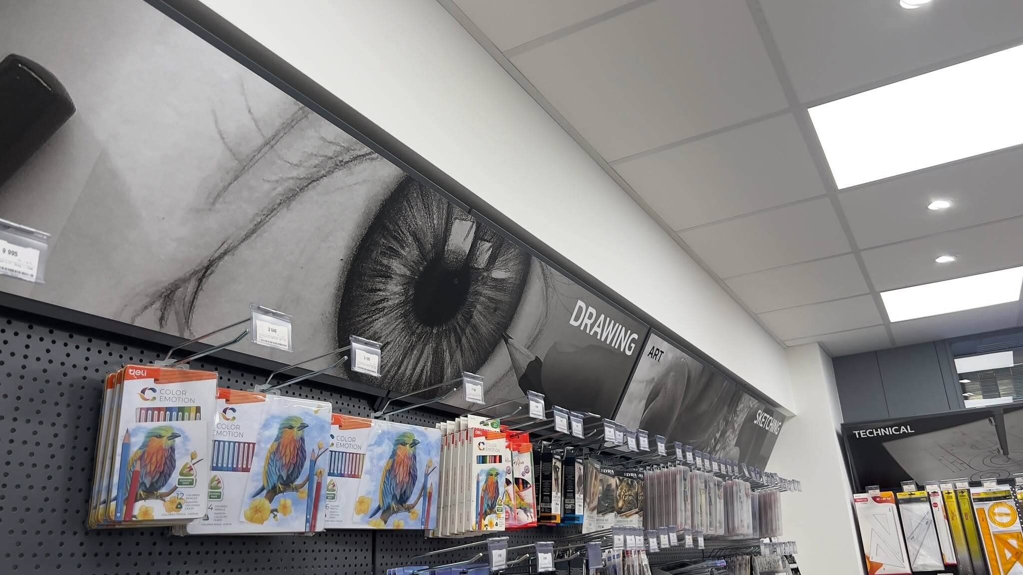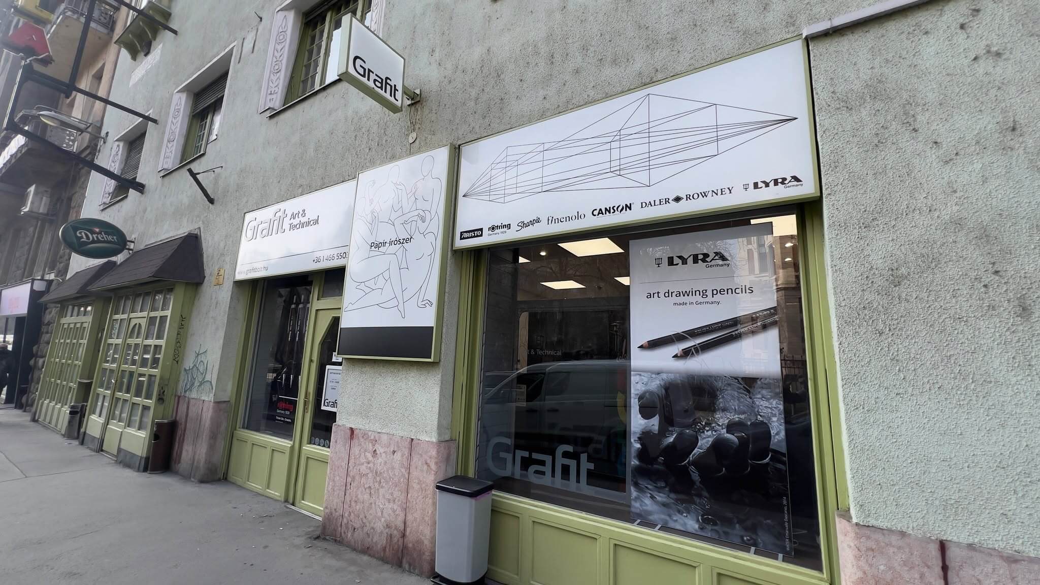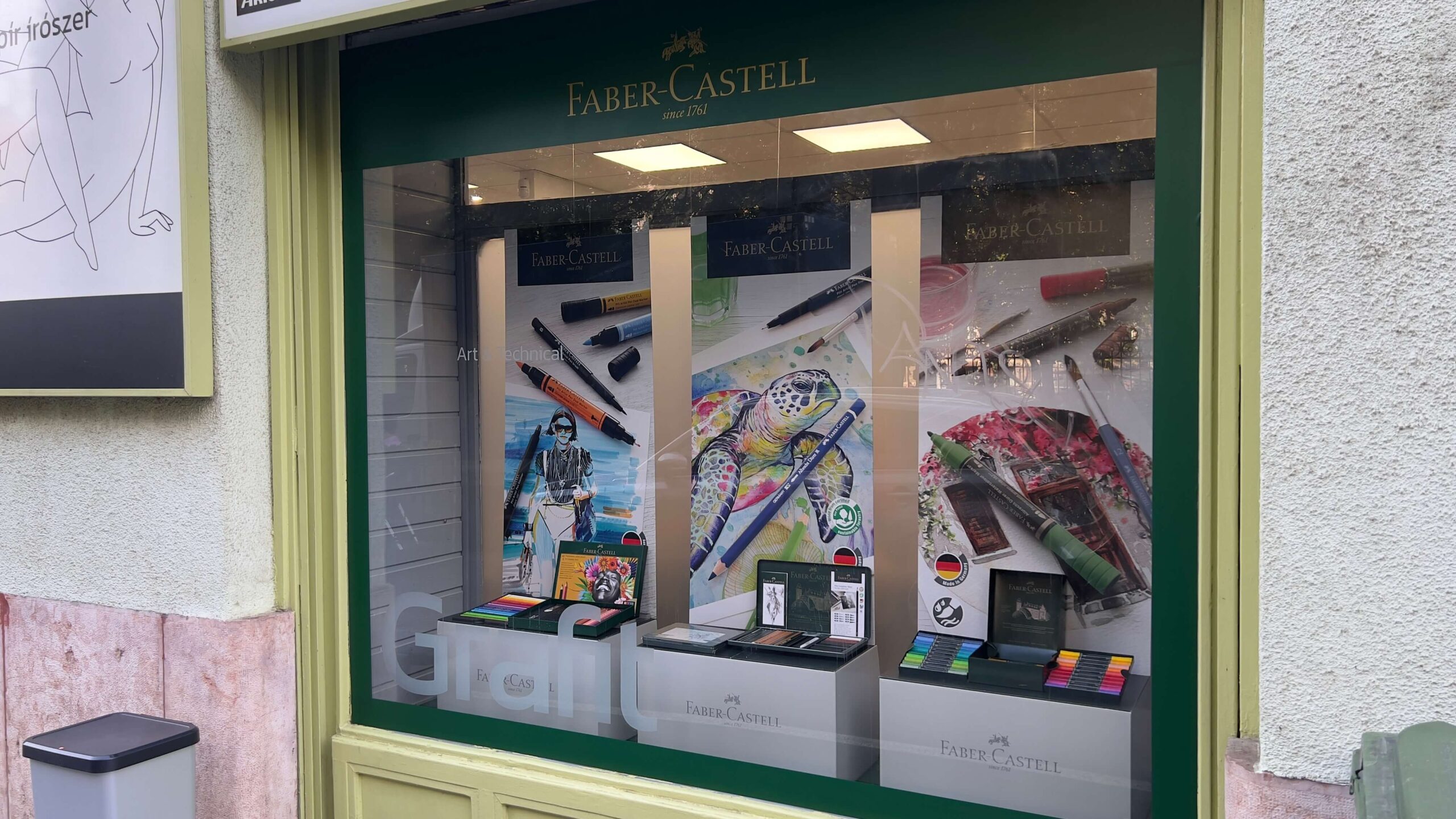 A teljes vizuális megjelenést a prémium minőségű Faber-Castell márka elegáns és inspiráló világához hangoltuk. A cél az volt, hogy az üzlet minden részlete – a bútoroktól a fali dekorokon át a kirakatig – a kreativitást és a professzionalizmust sugározza.